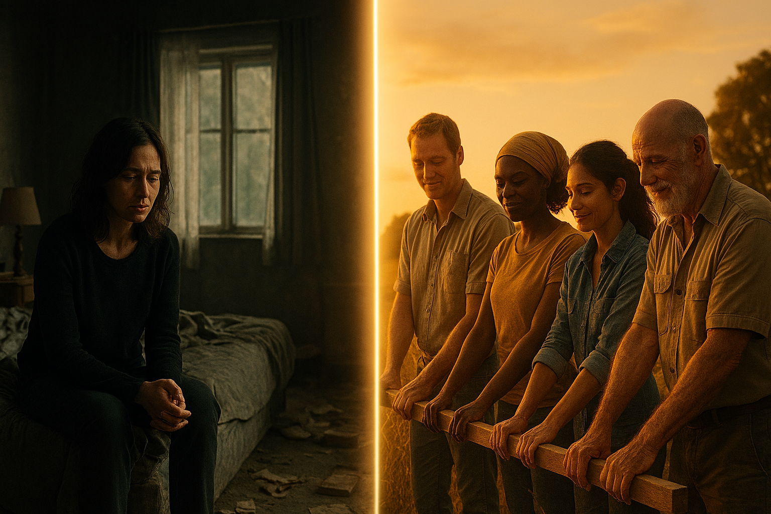 The deliberate juxtaposition of the opening scene—where the collective goes about its tasks with moments of joy—and Carol struggling to bury her lover is stark. This beginning visually and subtly presents the argument that the joining is not as bad as Carol claims. Within the hive, humanity works peacefully toward a common goal. Individuals outside the collective, however, struggle alone.